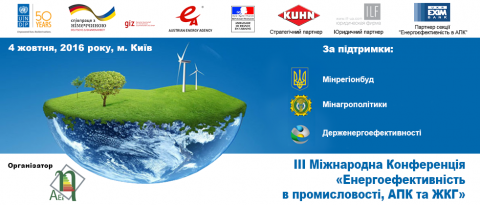 УКРІМА анонсує: 4 жовтня 2016 року відбудеться IIІ Міжнародна Конференція «Енергоефективність в промисловості, АПК та ЖКГ», яка стала професійним бізнес-майданчиком та покликана популяризувати політику енергоефективності та енергозбереження на міжнародному, державному, регіональному та муніципальному рівнях. Місце проведення: Готель «Президент», вул. Госпітальна, 12, м. Київ.