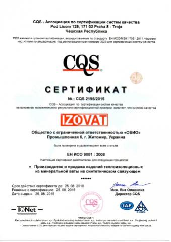 ТМ "IZOVAT" уверенно продолжает совершенствоваться и развиваться, компания прошла аудит и получила сертификат международного стандарта качества EN ISO 9001:2008 – уровень, к которому стремятся и достигают самые успешные компании в мире!